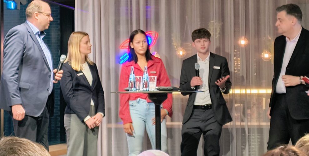Gewonnen hat unser ehemaliger Abiturient und jetziger Auszubildender Markus Neumann mit seinen Kolleginnen Nele-Marie Hanses und Lisa Schucht beim Planspiel Börse der Sparkasse Bremen.  Das Team der Sparkassen-Azubis erzielte in der Kategorie „Nachhaltigkeit“ den dritten Platz. Das Planspiel Börse ist ein spannender Online-Wettbewerb, bei dem die
